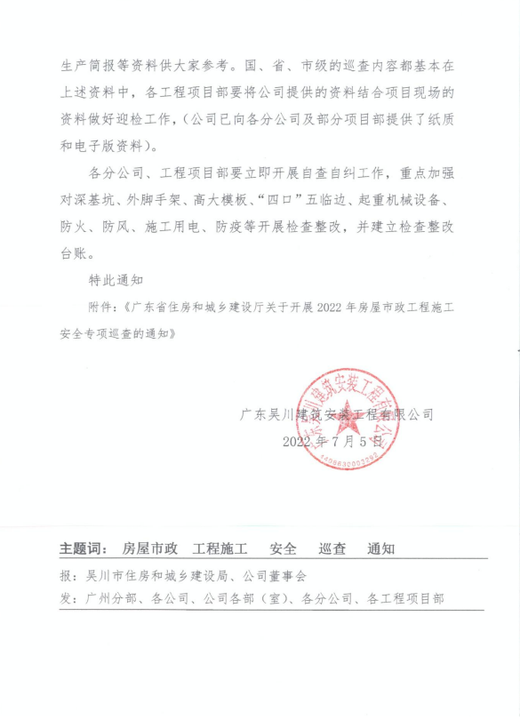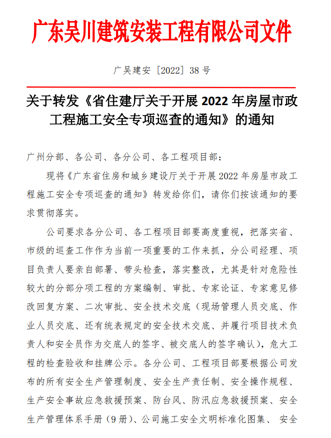 為認(rèn)真落實(shí)《住房和城鄉(xiāng)建設(shè)部關(guān)于開展房屋市政工程安全生產(chǎn)治理行動的通知》(建質(zhì)電〔2022〕19號)、《廣東省安全生產(chǎn)委員會關(guān)于印發(fā)<廣東省安全生產(chǎn)大檢查工作實(shí)施方案>的通知》(粵安〔2022〕6號)工作部署,進(jìn)一步壓實(shí)建設(shè)各方安全生產(chǎn)主體責(zé)任,治理施工安全突出問題,切實(shí)提升全省施工安全管理水平,按照我廳今年重點(diǎn)工作任務(wù)安排,結(jié)合我省城市建設(shè)安全專項(xiàng)整治三年行動有關(guān)工作實(shí)際,我廳通過政府購買服務(wù)的方式,委托第三方專業(yè)機(jī)構(gòu),開展全省房屋市政工程施工安全專項(xiàng)巡查。現(xiàn)將有關(guān)事項(xiàng)通知如下: